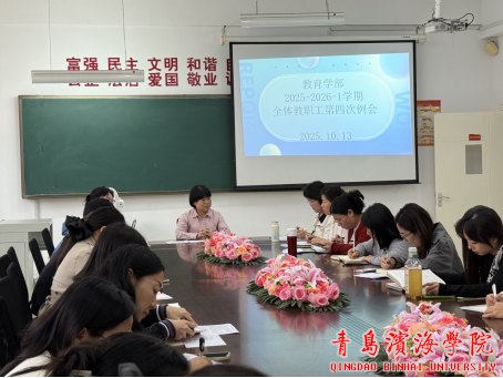 2025年10月13日,教育学部于泽德楼201会议室组织召开2025-2026-1学期全体教职工第四次例会,会议由教育学部院长王萍主持会议,全体教职工参会。