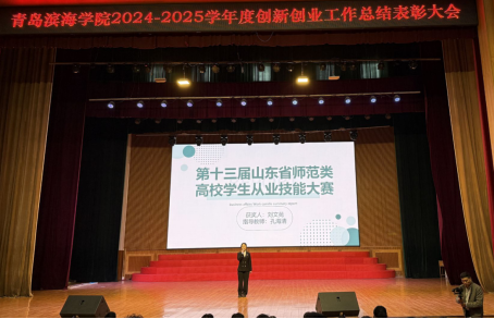 青岛滨海学院2024-2025学年度创新创业工作总结表彰大会在小珠山校区礼堂召开。常务副校长韩晓萌,副校长翟明戈,党委副书记孙健,校长助理王同娟、谢海军、冯志杰、教育学部王萍院长等出席大会。