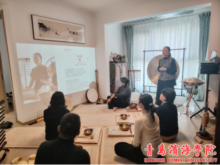 活动伊始,章雨薇校友向母校教师团队介绍了工作室的发展历程与核心理念。她结合自身从专业转型为音声疗愈师的经历,分享了如何将音乐心理学、声波共振原理与东方养生智慧相结合,开发出针对压力管理、情绪疏导的特色课程体系。“音声疗愈不仅是声音的艺术,更是通过特定频率的声波与人体产生共振,达到调节身心平衡的科学实践。”章雨薇强调,其团队已为全国多家企业、学校及社区提供定制化疗愈服务,累计服务超百万人次。在实践环节,教师们亲身体验了颂钵疗愈的全流程。校友章雨薇以专业手法敲击不同尺寸的铜制颂钵,引导大家闭目静心,感受声波在身体各部位的流动。随着低频音波的扩散,团队成员逐渐进入放松状态,王萍院长在体验后表示:“颂钵的振动频率与人体细胞产生微妙共鸣,这种非语言的疗愈方式为教育工作者缓解职业倦怠、提升情绪管理能力提供了新思路。”体验结束后,双方围绕“音声疗愈与教育场景的融合”展开深度研讨。王萍院长提出三点合作设想。在教师发展方面,将音声疗愈纳入教师培训体系,帮助教师掌握自我调节技巧,提升职业幸福感;在学生心理健康方面,开发针对学生焦虑、注意力分散等问题的音声干预课程,作为传统心理辅导的补充;在课程创新实践方面,结合音乐教育专业特色,设计"音声疗愈+艺术表达"跨学科课程,培养学生综合素养。校友章雨薇对此高度认同,并表示愿与学部共建实训基地,提供设备支持与案例资源,助力教育人才培养模式创新。
