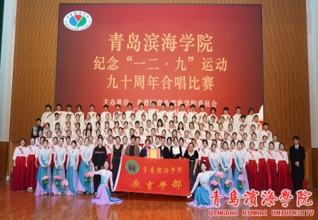 12月9日晚,青岛滨海学院礼堂内灯光璀璨、歌声激昂,由共青团青岛滨海学院委员会主办的纪念“一二・九”运动九十周年合唱比赛在此举行。全校各院系合唱团同台竞技,教育学部合唱团身着整齐服装、精神抖擞亮相,最终勇夺“一二・九”合唱比赛一等奖。现场师生代表齐聚,以嘹亮歌声回望峥嵘历史,抒发爱国情怀,呈现了一场富有感染力的视听盛宴。