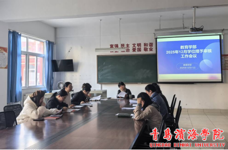 2025年12月11日下午14:50,教育学部在泽德楼201组织召开2025年下半年学士学位授予审查工作会议,学位评定分委员会主席王萍、副主席翟常秀、办公室主任宋爱君、秘书邱艳娟及各委员参会。