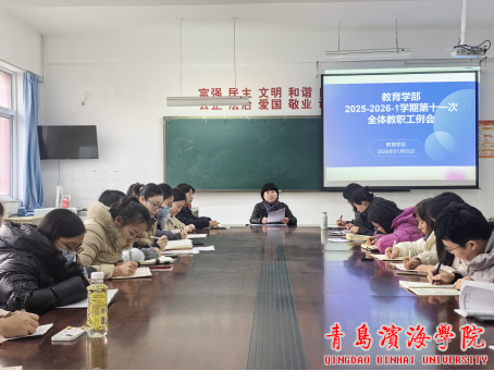 2026年1月5日在泽德楼201组织召开教育学部全体教职工第十一次例会,本次会议由教育学部王萍院长主持,教育学部全体教师参加。