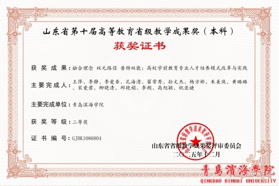 近日,山东省第十届高等教育教学成果奖评审结果正式公布,学部申报的《融合理念 双元路径 普特双能:高校学前教育专业人才培养模式改革与实践》荣获二等奖。这一殊荣的获得,实现了学部在该奖项上的新突破,是对学部持续深化教育教学改革、提升人才培养质量所取得成效的肯定。此次获奖,充分彰显了学部在学前教育专业建设、教学改革创新及“普特双能”型人才培养方面的核心竞争力和示范引领力。