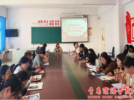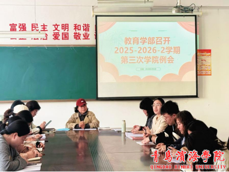 2026年4月6日,教育学部在泽德楼201召开本学期第三次全体教职工会议,由王萍院长主持,全体教师参会。