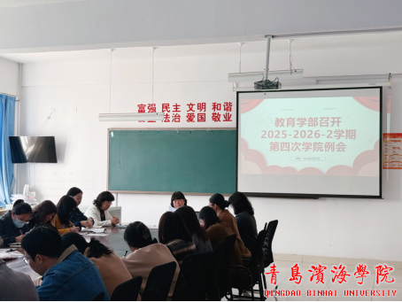 2026年4月20日,教育学部在泽德楼201召开本学期第四次全体教职工会议,由王萍院长主持,全体教师参会。