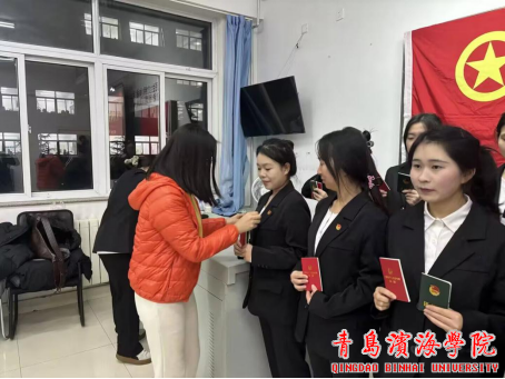 活动伊始,全体人员奏唱国歌,庄严肃穆的旋律拉开了入团仪式的序幕。刘老师随后阐释了入团仪式的重要意义,指出这不仅是新团员加入共青团的光荣时刻,更是一次深刻的理想信念教育,并宣读了郭文博、黄玉飞等新团员名单。仪式过程中,现场依次完成团章、团员证与团徽的颁发环节,刘老师将团徽给新团员郑重佩戴于左胸前;团总支学生副书记刘佳怡带领新团员面向团旗庄严宣誓,宣誓人紧握右拳、举过右肩,逐句跟读誓词并报出姓名,铮铮誓言彰显着青年的责任与担当。之后,入团介绍人代表宣读《团章》中团员的义务和权利条款,新团员代表与老团员代表先后发言,分享心路历程与成长感悟,刘老师也对新团员提出了殷切希望与具体要求。仪式接近尾声,全体人员齐唱团歌,悠扬的歌声为本次入团仪式画上圆满句号。